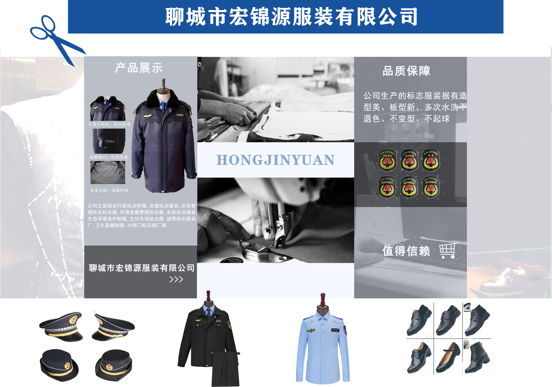 聊城市宏錦源服裝有限公司位于江北水城—山東聊城,地理位置優(yōu)越,交通便利。公司主營綜合行政執(zhí)法制服,交通執(zhí)法服裝,應(yīng)急管理執(zhí)法標(biāo)志服,市場監(jiān)督管理標(biāo)志服,農(nóng)業(yè)執(zhí)法服裝,生態(tài)環(huán)境保護(hù)制服,文化市場執(zhí)法服,城管標(biāo)志服裝廠,衛(wèi)生監(jiān)督制服,六部門標(biāo)志服廠家等,值得信賴! 公司生產(chǎn)的標(biāo)志服裝據(jù)有造型美、板型新、多次水洗不退色、不變型、不起泡。 “認(rèn)真辦事,踏實(shí)做人”是宏錦源的企業(yè)精神,我們的宗旨是:“用服務(wù)與真誠來換取你的信任與支持,互惠互利,共創(chuàng)雙贏!”我公司愿與國內(nèi)外各界同仁志士竭誠合作,共創(chuàng)未來企業(yè)目標(biāo):在已選定的服飾領(lǐng)域中,成為行業(yè)的卓越者。 經(jīng)營理念:追求產(chǎn)品卓越,為用戶提供完美、高效的服務(wù)。...